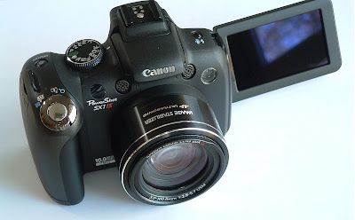 This video is also my first video with the new camera Johanne bought me for my birthday! It's a Canon SX1 IS. The camera is in the category they call "superzooms", a bit of a misnomer for cameras that are halfway between point-and-shoot and SLR. They have most of the flexible manual controls of an SLR, significant glass and an internal viewfinder. But the lens is not interchangeable and the viewfinder is an internal LCD (as opposed to a mirrored view through the lens). Among the superzooms, the Canon has the best video features for me (full 1080 HD, full swivel on the LCD, manual focus and exposure locking, and a remote control).